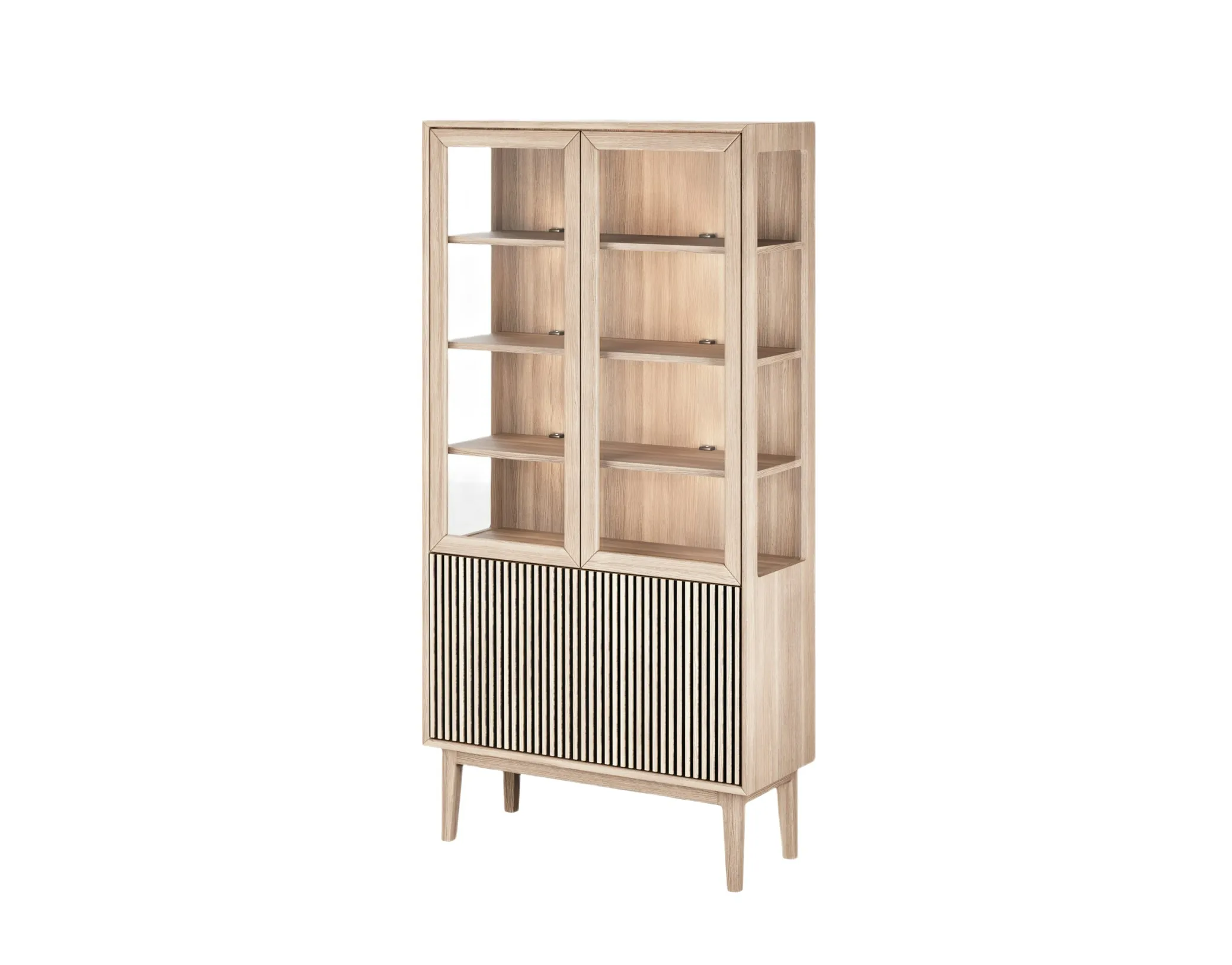 Gjør favorittgjenstandene dine til midtpunktet i hjemmet ditt med CASØ Broholm vitrineskap med glassider. Dette skapet kombinerer tidløs skandinavisk design med moderne funksjonalitet, perfekt for de som søker en lett og stilig oppbevaringsløsning.