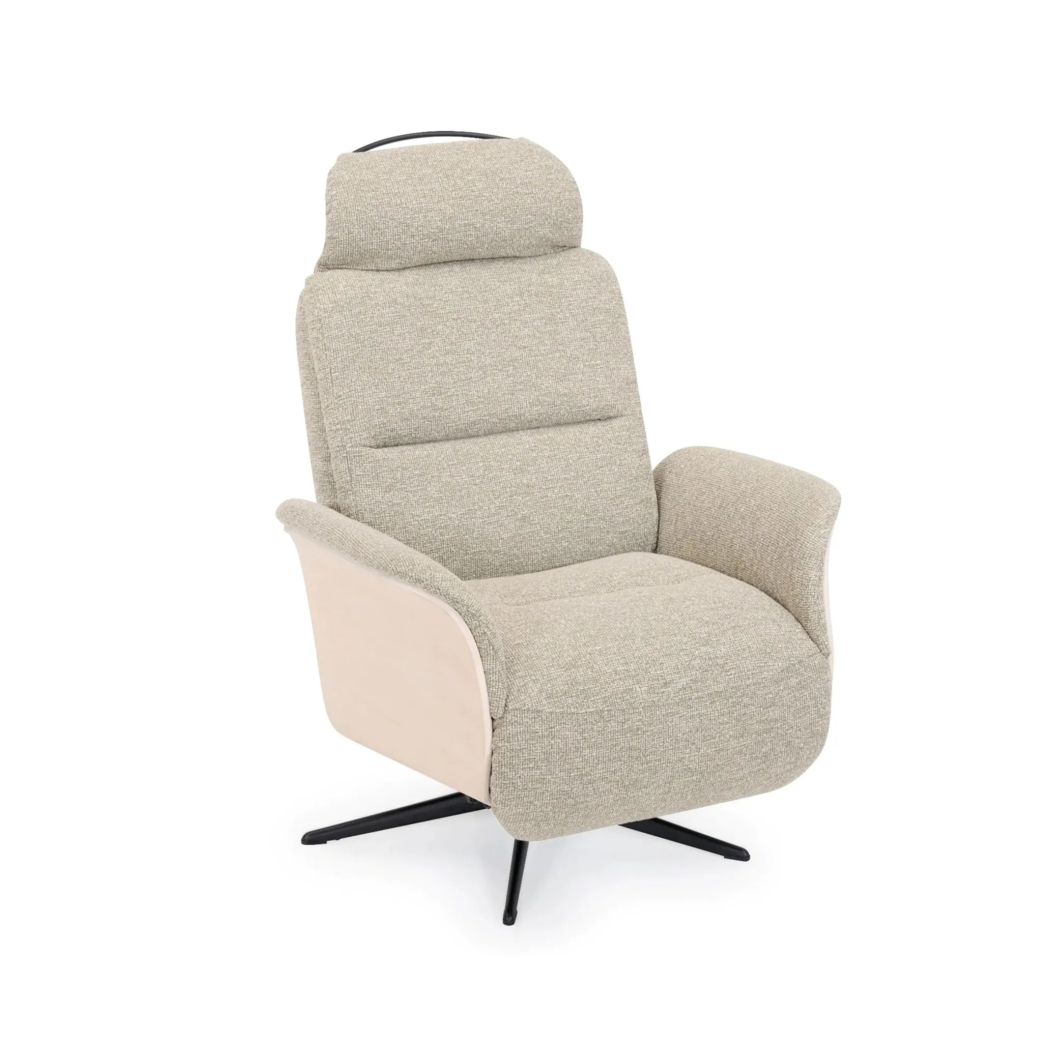 Denne modellen har flere fine funksjoner for optimal komfort: manuell recline-funksjon som lar deg vinkle ryggen etter behov, og en innebygd fothviler som gir ekstra hvile for bena. Sete og rygg er polstret med formstøpt kaldskum, som gir god støtte og komfort over tid.