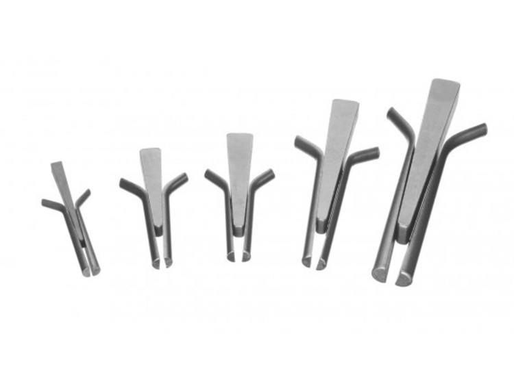 Sprengkiler blir brukt til å dele stein. Bruker man sprengkiler riktig, vil de fleste steiner dele seg. Sprengkiler har vært brukt i evigheter i steinindustrien, og er fortsatt blant de mest effektive verktøyene for deling av stein. - Bor hull langs den linjen som du ønsker å dele. Bor hull i steinen som er minst like dypt som kilen du skal bruke er lang. Hullene skal ha en avstand på ca 15 cm. Hvis steinen er veldig tykk bores hullene dypere og tettere. Steinen kan deles med en rett eller buet linje, alt etter hvordan du setter kilene. - Sett kilene i hullene. Pass på at "ørene" står mot den retningen du vil at steinen skal deles. - Slå på kilene med slaghammer i en bestemt rekkefølge, slå bestemt, men ikke overdriv. Vent noen minutter. Gjenta dette til steinen deler seg. 15,2cm lang.