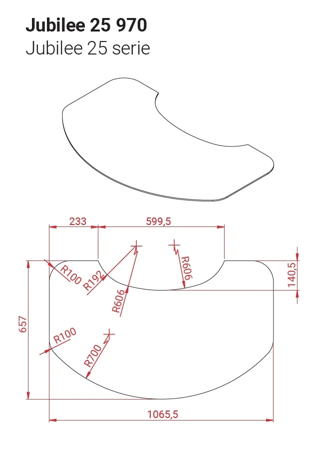 Formgulvplate som legges løst fremfor din Lotus Jubilee 25 serie vedovn. Platen stikker ca. 23 cm utom på hver side og 50 cm fremom døren. Husk å heve ovnen ca. 8mm ved montering for å gjøre plass til gulvplaten.
