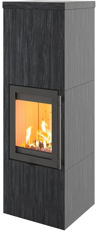 Ovnens robuste konstruksjon med støpejernsdører, Thermotte i vedkammeret, 5 cm tykk stein og Power Stones inkludert, sørger for utmerket varmelagring og langvarig varme med sin vekt på hele 586kg. Ovnens effektive fyringsteknikk minimerer aske, samtidig som den sørger for en jevn, behagelig temperatur i timevis etter at ilden har slukket.