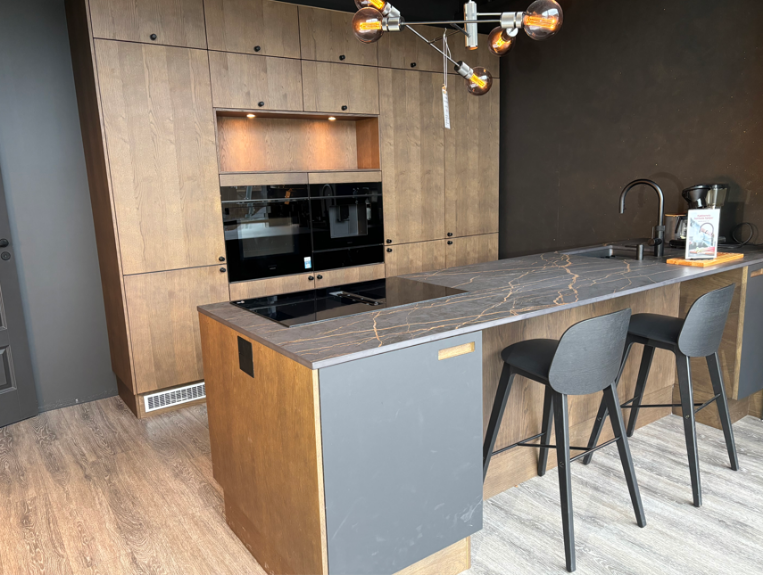 En kjøkkenøy gir rommet et flott og funksjonelt midtpunkt, som samler familien og gjestene på en naturlig måte. Med integrert barløsning får du både ekstra sitteplass og et sosialt område hvor man kan nyte måltider, kaffe eller en hyggelig prat. Det skaper god flyt i kjøkkenet og gjør matlagingen mer praktisk, samtidig som det gir en moderne og innbydende atmosfære.