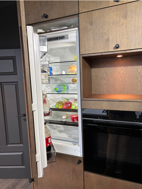 Dette integrerte kombiskapet gir god oppbevaringsplass med ca. 209 liter kjølerom og 63 liter fryser, slik at du enkelt får plass til både ferskvarer og frosne matvarer. Med tydelig LED‑lys og justerbare hyller får du oversikt og fleksibilitet til å organisere innholdet etter behov.