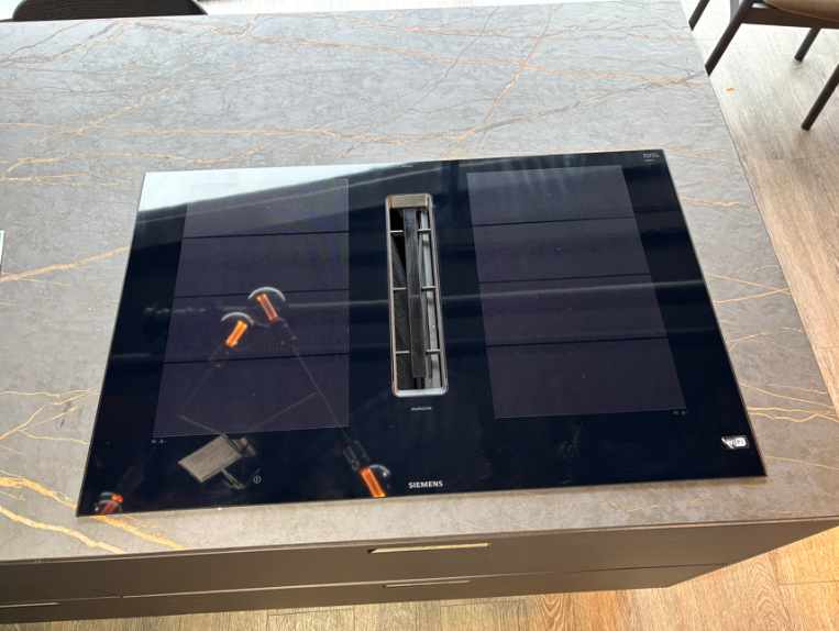 Siemens EX877NX68E kombinerer en kraftfull induksjonstopp med fire kokeområder og en innebygd ventilator som sørger for at damp og matlukt tas effektivt bort under matlaging. Den smarte flexInduction‑teknologien tilpasser varmen etter kjelene dine, mens touch‑kontroll med elegant blått grensesnitt gir presis styring.