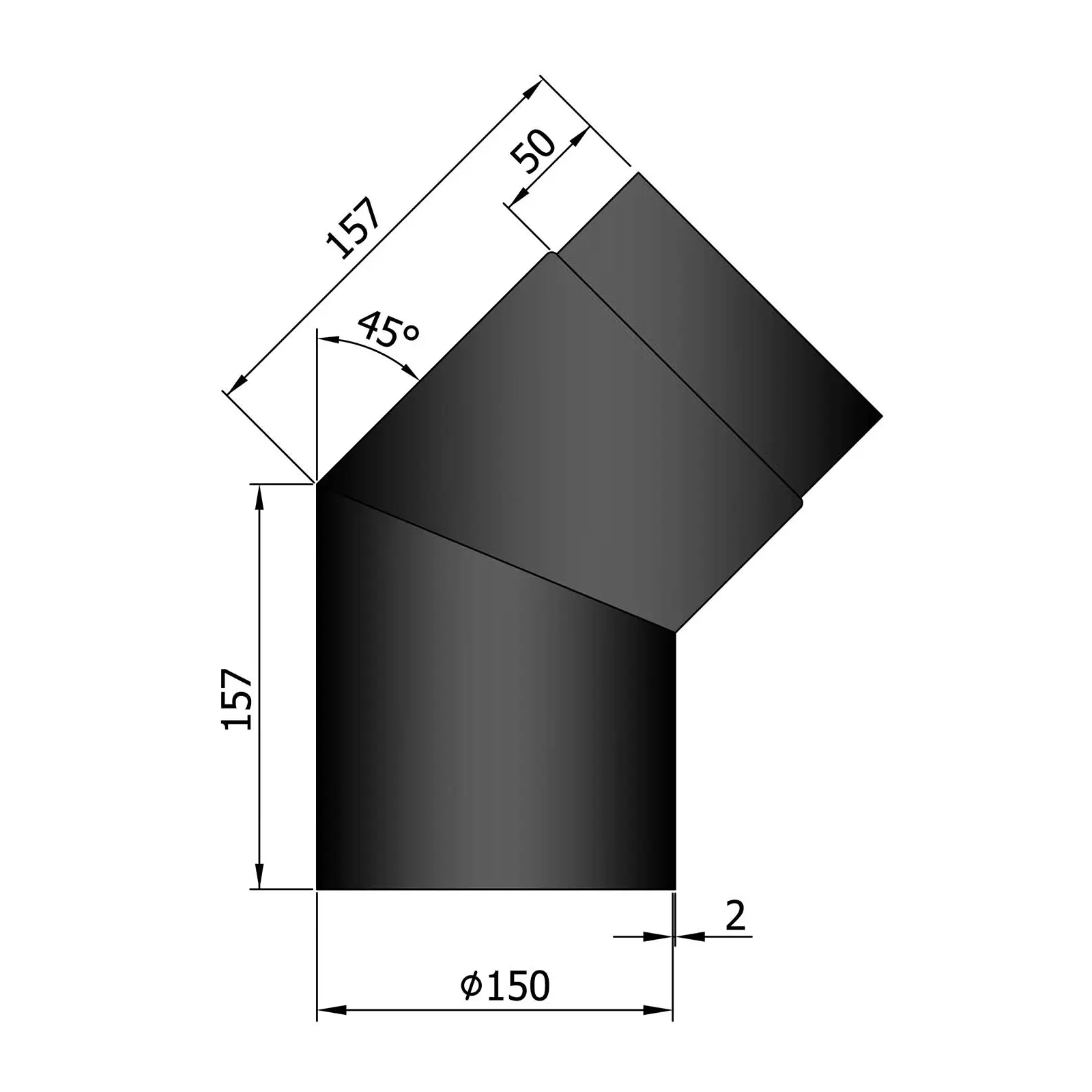 Røykrør bend 45° Ø150mm svart metallic