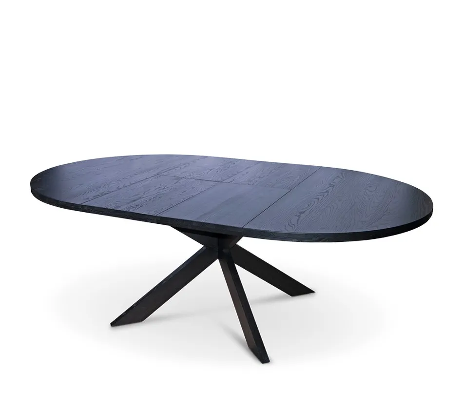 Tofta 140/180 spisebord er et rustikt bord i rund eller oval form med medfølgende ileggsplate som enkelt kan oppbevares under bordplaten når den ikke er i bruk.